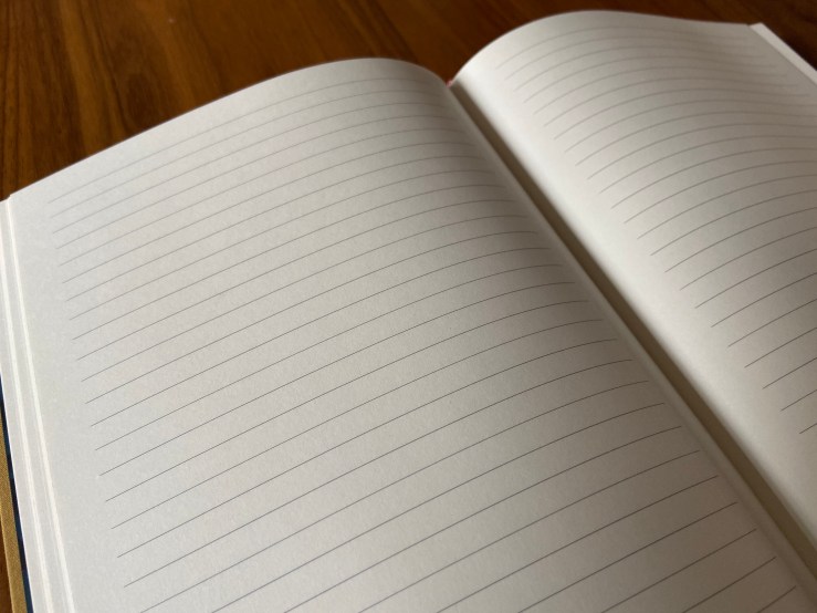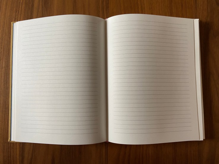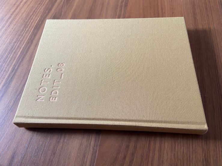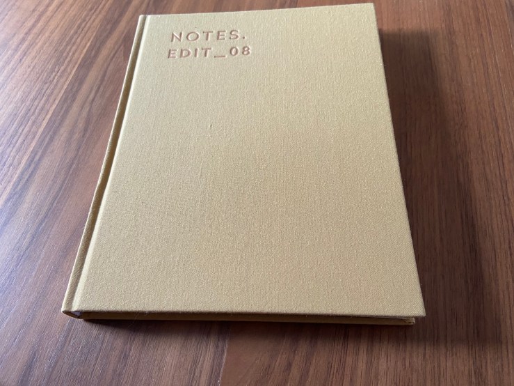 This notebook is part of a beautiful series by Norwegian company Darling Clementine. They include exterior color and interior pattern variations. Each notebook is labeled as R.P.S. (rock, paper, scissors) ‘edits.’ This particular edition is between a sand-beige and a mustardy-yellow, with a bold teal and black pattern on the inside front and back covers. It comes, too, with an attached ribbon bookmark; and it includes lined pages. Not only are they visually striking, but the covers feel amazing, a hardcover notebook that still feels soft and a lil bit luxe, especially in its minimalist cover and maximalist inside.