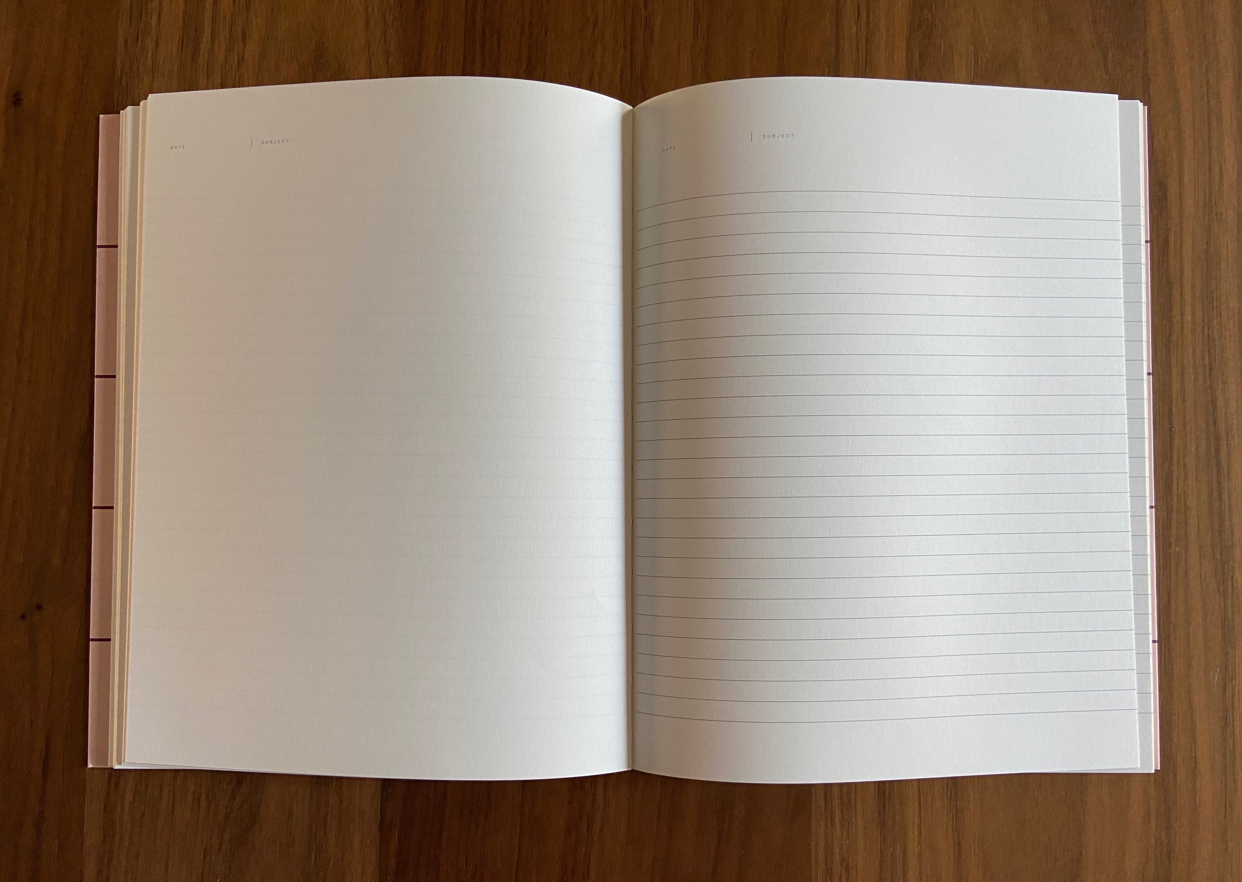 What is particularly special about these pieces is their absolute paper-i-ness. Is that a word? It is now, haha. The covers are a thicker paper, akin to a light cardboard, but bendable and dependable. The lined pages appear on one side while blank on the other, and the notebooks open flat. It will make an ideal place for a large-scale project, whenever I can decide to actually put pen to paper–but maybe I’ll save the pink version and use the gray or blue instead !